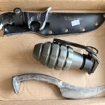 *Knives & Edged Weapons: Bowie knives, machetes, axes, tomahawks, tactical blades, replica swords, specialty knives, and assorted knife lots.