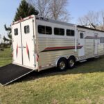 *2003 FSR Aluminum 3-Horse Gooseneck Trailer – Fully equipped with living quarters, bathroom, kitchen, A/C, generator, hot water heater, and tack storage. Ready for shows or travel.