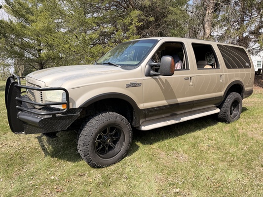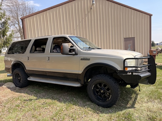 *2004 Ford Excursion Limited 4×4 – 6.0L diesel, 265K miles, strong running and driving condition. Equipped with a push bumper and dual batteries.